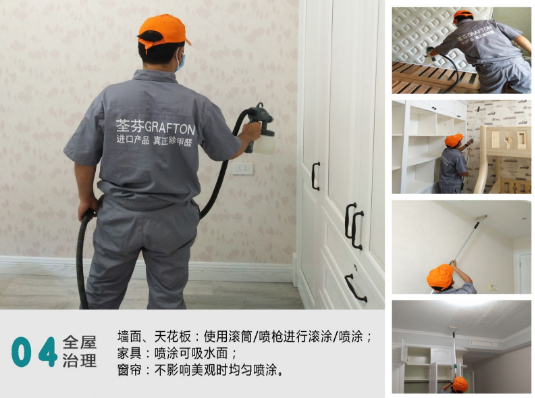 好產(chǎn)品還需要搭配好服務(wù),荃芬專業(yè)凈醛服務(wù),用目前世界上除醛性能卓越的荃芬GRAFTON甲醛清除劑(日本專利技術(shù)),通過荃芬專業(yè)化施工,保證了最大的甲醛清除速度及長達(dá)5~8年以上的效果保持。施工后快速將室內(nèi)甲醛濃度降低至安全范圍,并持久保持5~8年以上。保證了普通消費者在日常生活中的室內(nèi)空氣安全,解決了消費者面臨的室內(nèi)甲醛污染問題。